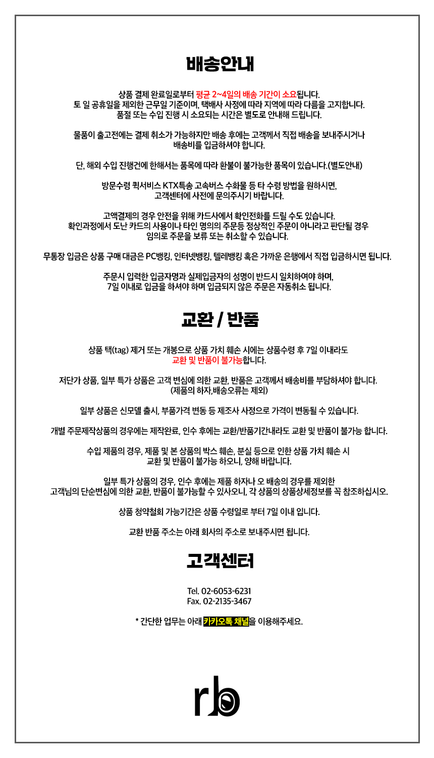 영업시간외 문의는 카카오톡  채널로 부탁드립니다.